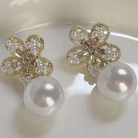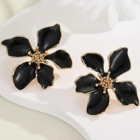 JJK52 Red Rose Flower Stud Earrings with Accent