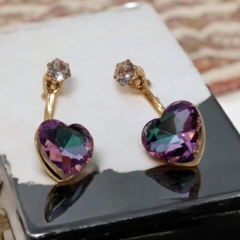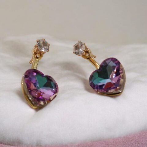 Multi Colour Heart Drop Earrings with Crystal Embellishments or Gold-Plated Multi-Color Crystal Heart Dangler Earrings.