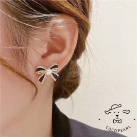 Mini Pearl Stud Earrings with Pave Bar Accent