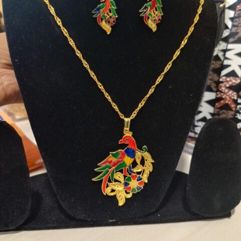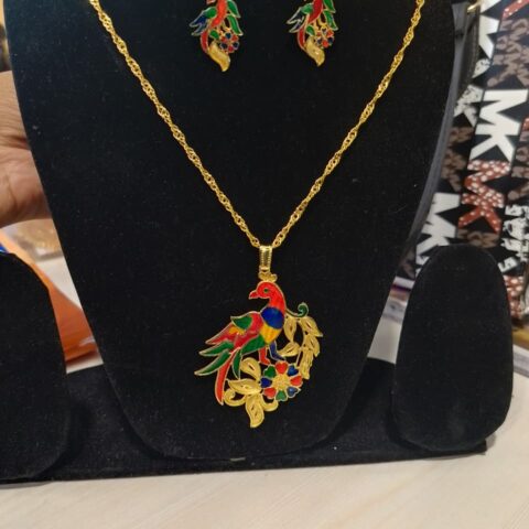Mahavir Dye Gold Plated Meenakari Chain Pendant Set or a similar Peacock Minakari Pendant Set