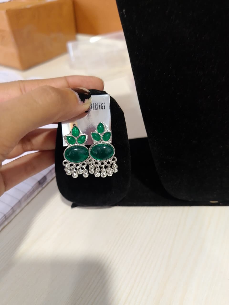 Make a bold style statement with these stunning emerald green earrings, designed to add a pop of color and elegance to any outfit. Featuring vibrant emerald green stones set in a sleek and polished frame, these earrings exude luxury and timeless charm. Whether you’re dressing up for a special occasion or adding a touch of glamour to your everyday look, their eye-catching hue and classic design make them a perfect choice. Lightweight and comfortable to wear, they are also skin-friendly and suitable for all-day use. A must-have accessory, these earrings bring a perfect blend of sophistication and contemporary flair.