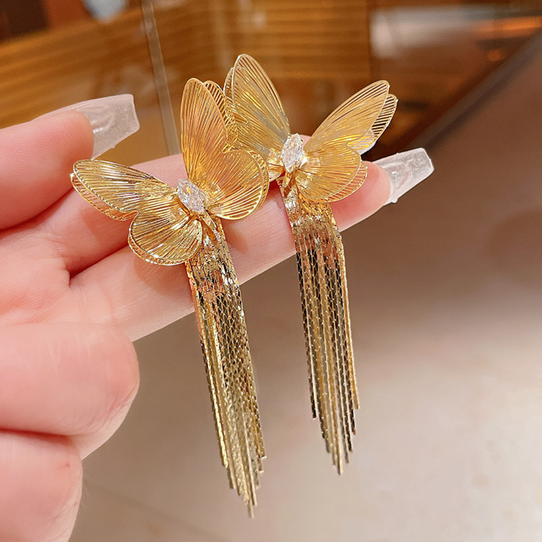 Elevate your style with the Estailo Shining Butterfly Long Chain Earrings, a perfect blend of elegance and whimsy. These earrings feature delicate butterfly charms suspended from graceful, shimmering chains that catch the light with every movement. The sparkling design adds a touch of glamour, making them ideal for special occasions or adding sophistication to everyday outfits. Lightweight and comfortable, their long, flowing silhouette creates a stunning statement without overwhelming your look. Inspired by nature’s beauty and modern fashion, these earrings bring a playful yet refined charm to any jewelry collection. A must-have accessory for those who love graceful, eye-catching style.