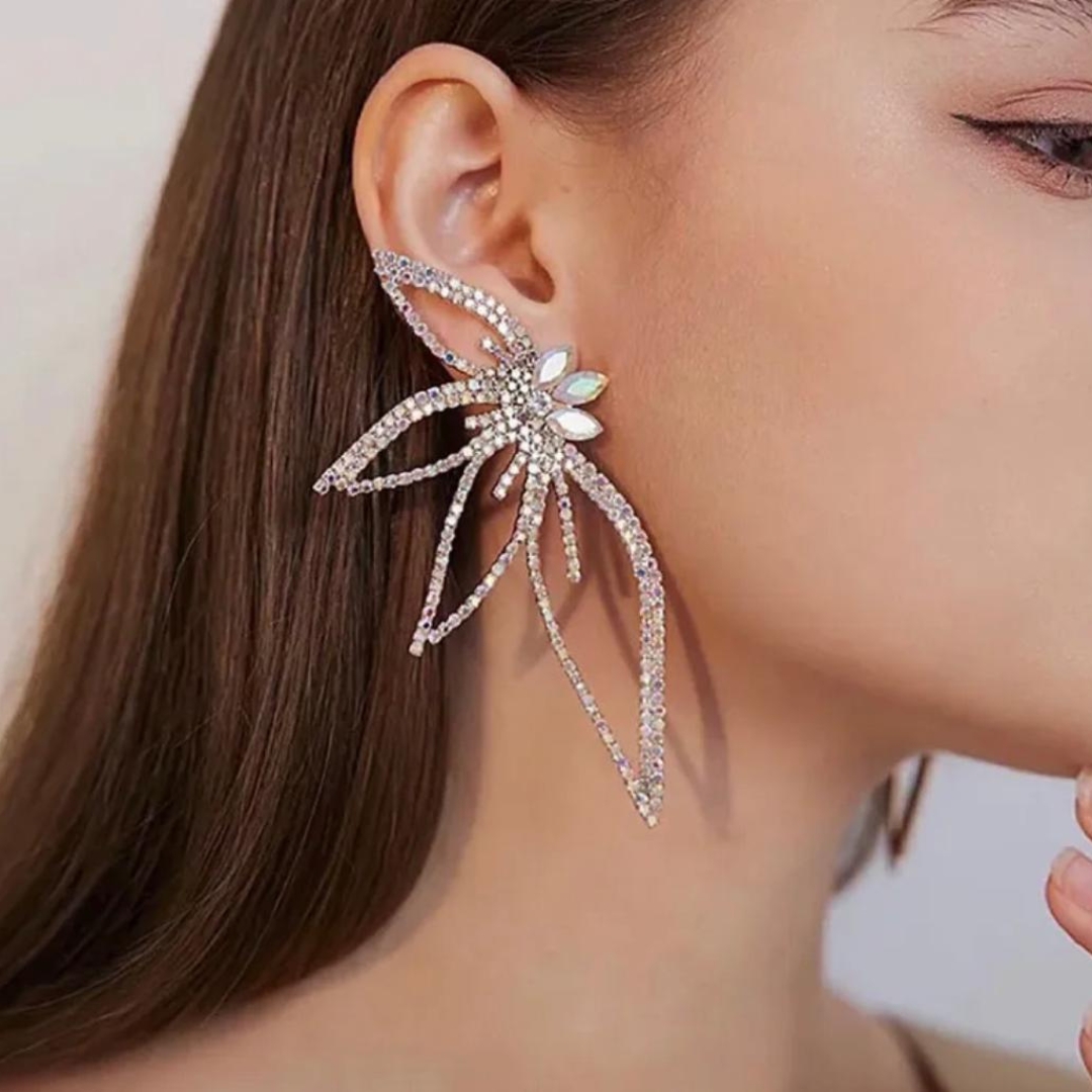 Exaggerated Zircon Maple Leaf Stud Earrings