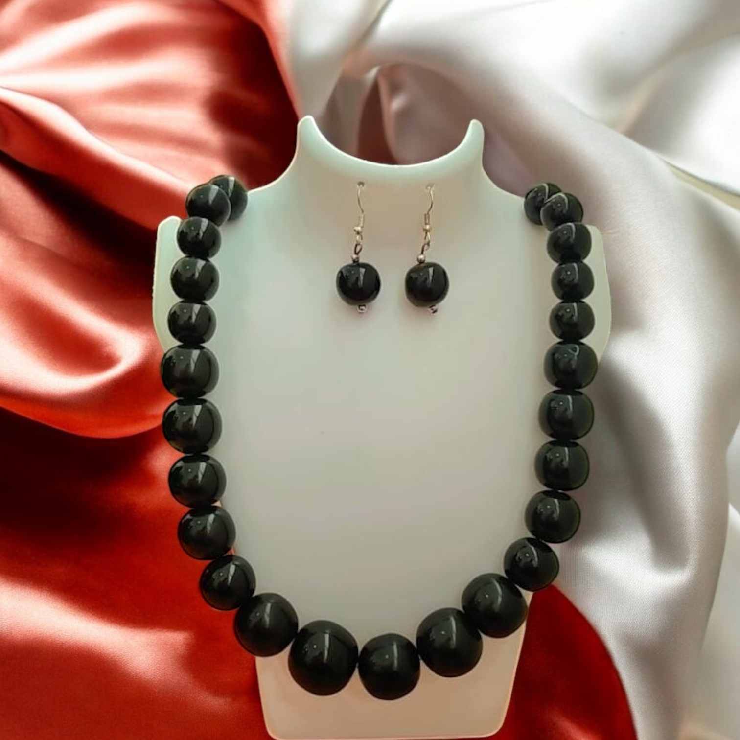 Elegant Fancy Resin Black Necklace Set with big round beads. Perfect for festive, party, and everyday wear! ✨