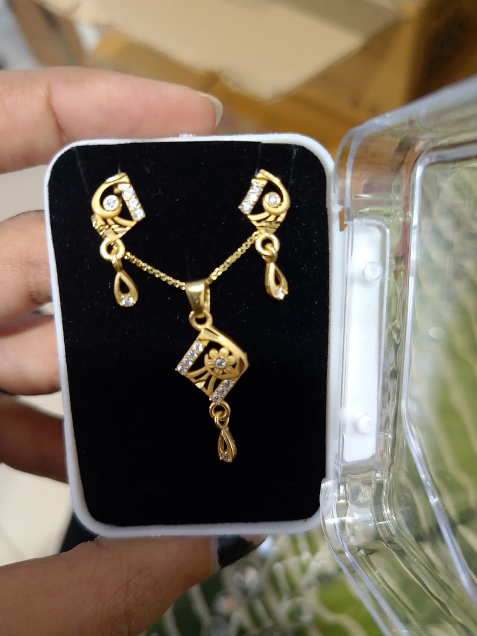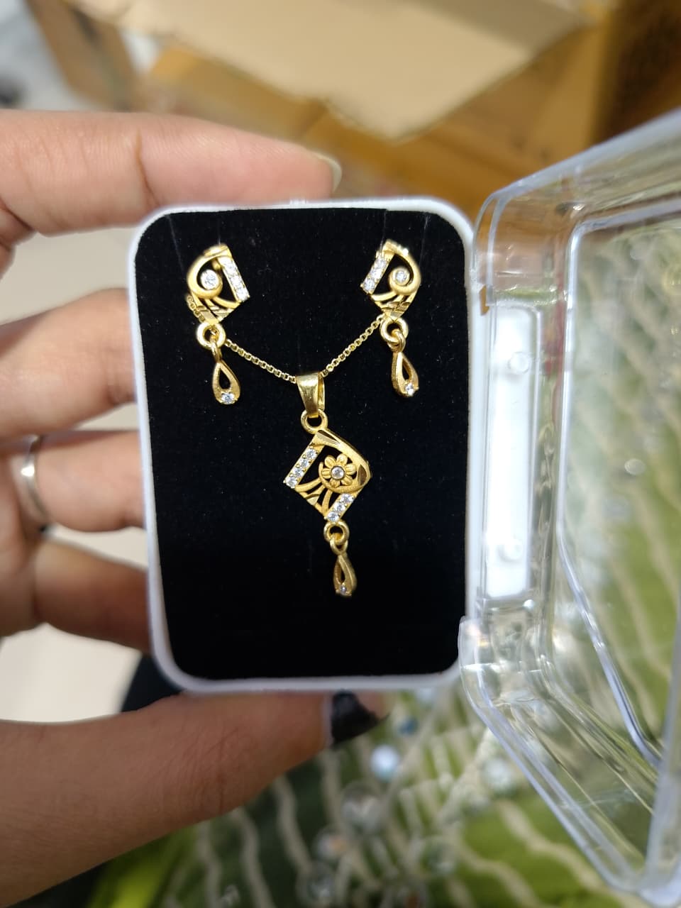 Add a touch of elegance to your ensemble with this stunning gold-plated pendant set, beautifully adorned with sparkling American Diamonds (Cubic Zirconia). Designed to capture light from every angle, the finely cut stones radiate brilliance, giving you a luxurious look without the heavy price tag. The rich gold plating enhances its charm, making it an ideal accessory for both casual outings and special occasions. Lightweight, durable, and skin-friendly, this pendant set includes matching earrings to complete your look. Perfect as a thoughtful gift or a stylish addition to your own collection, this timeless piece exudes grace and sophistication.
