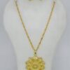 Enhance your jewellery collection with this elegant gold-plated pendant set with matching earrings. Designed with intricate detailing and a radiant gold finish, the pendant exudes timeless charm and sophistication. The matching earrings perfectly complement the pendant, creating a balanced and graceful look suitable for any occasion. Whether you’re dressing up for a festive event, a family gathering, or a casual outing, this versatile set adds a touch of class to any outfit. Lightweight and comfortable, it’s ideal for all-day wear. A perfect blend of tradition and style, this set also makes a thoughtful gift for someone special.