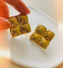 GP 2 Gold plated Square Textured Stud Earrings.
