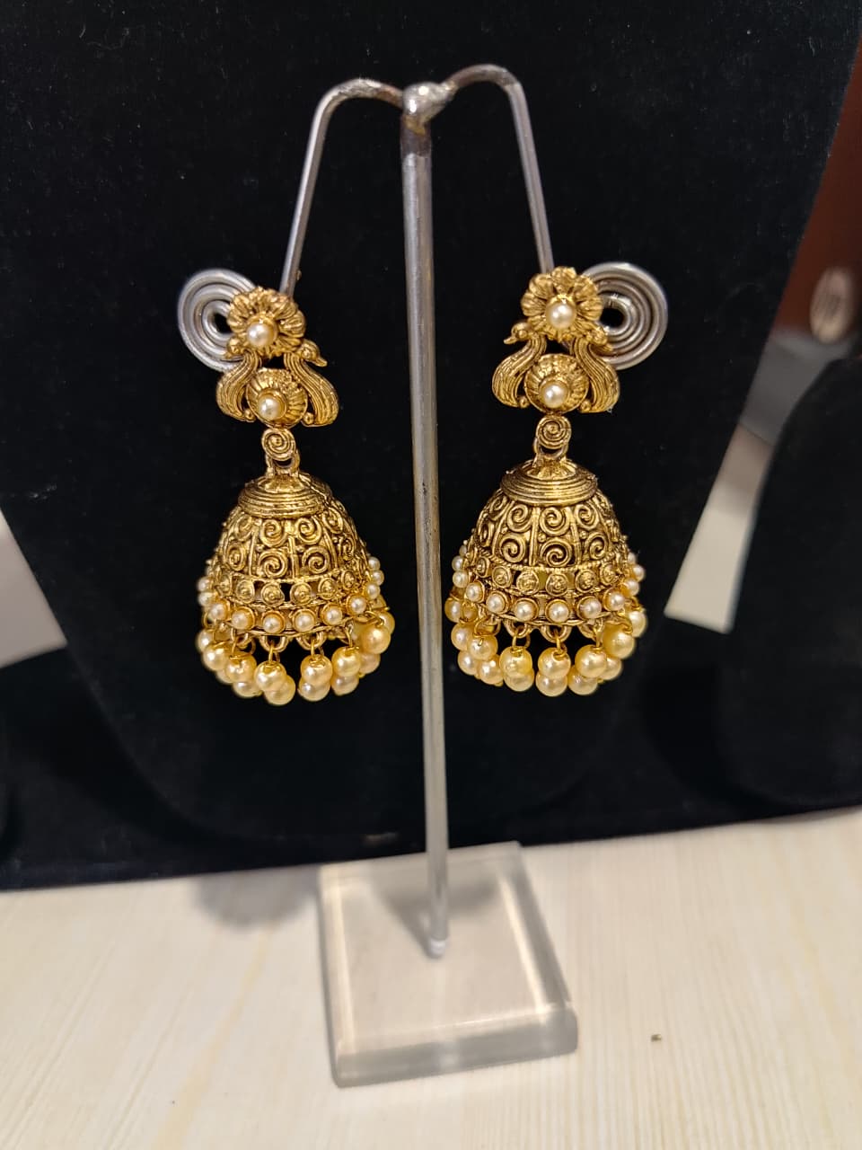Embrace timeless tradition with these exquisite Jhumka earrings, a classic symbol of Indian elegance. Beautifully crafted with intricate detailing, each earring features a graceful dome-shaped design adorned with delicate patterns, sparkling stones, or pearls that add a touch of glamour. Perfect for weddings, festive occasions, or cultural events, these earrings effortlessly enhance any ethnic outfit. Their elegant sway and artistic craftsmanship make them a standout accessory, reflecting heritage and grace. Lightweight yet striking, they offer both comfort and style. Whether paired with a saree or lehenga, these Jhumkas are a must-have for anyone who loves traditional, statement jewellery.
