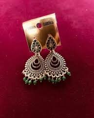 Add a touch of tradition and elegance to your jewelry collection with these Oxidised Jhumka Earrings. Expertly crafted with intricate detailing, these earrings feature the classic bell-shaped design that sways gracefully with every movement. The oxidised silver finish lends a vintage, antique appeal, making them perfect for festive occasions, cultural events, or everyday ethnic wear. Lightweight and comfortable, they pair beautifully with sarees, kurtis, and lehengas, effortlessly enhancing your overall look. Whether you’re dressing up for a celebration or adding flair to your daily attire, these oxidised jhumkas are a timeless accessory that blends heritage with graceful style.