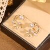 Korean Style Gold-Plated Pearl & Crystal Wreath Stud Earrings