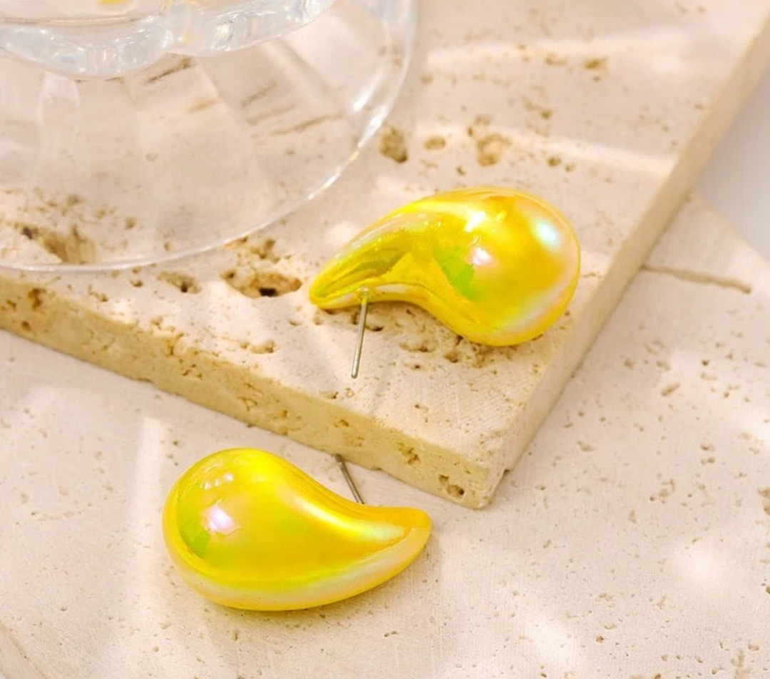 Add a fresh and vibrant touch to your look with our Lemon Multi Colour Water Drop Earrings. Featuring a unique water drop shape adorned with a lively mix of lemon-yellow and multi-colored accents, these earrings bring playful energy and bright charm to any outfit. The glossy finish enhances their eye-catching appeal, while the lightweight design ensures comfortable all-day wear. Perfect for casual outings, summer parties, or adding a pop of color to your everyday style, these earrings effortlessly blend fun and elegance. Embrace a cheerful vibe and stand out with these dazzling, colorful statement pieces in your jewelry collection.