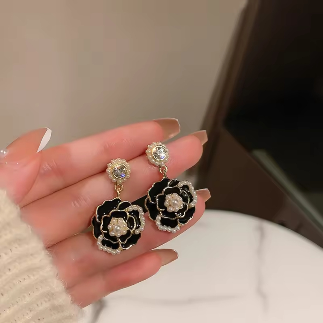 JJK 21 Fashion Luxury Camellia Pearl Stud Earrings or similar variations like Pearl Bow Dangle Earrings.