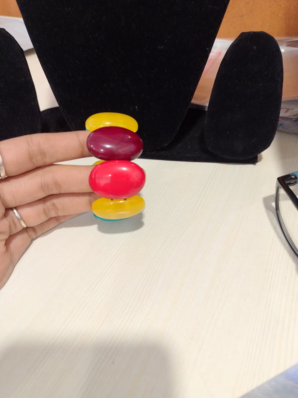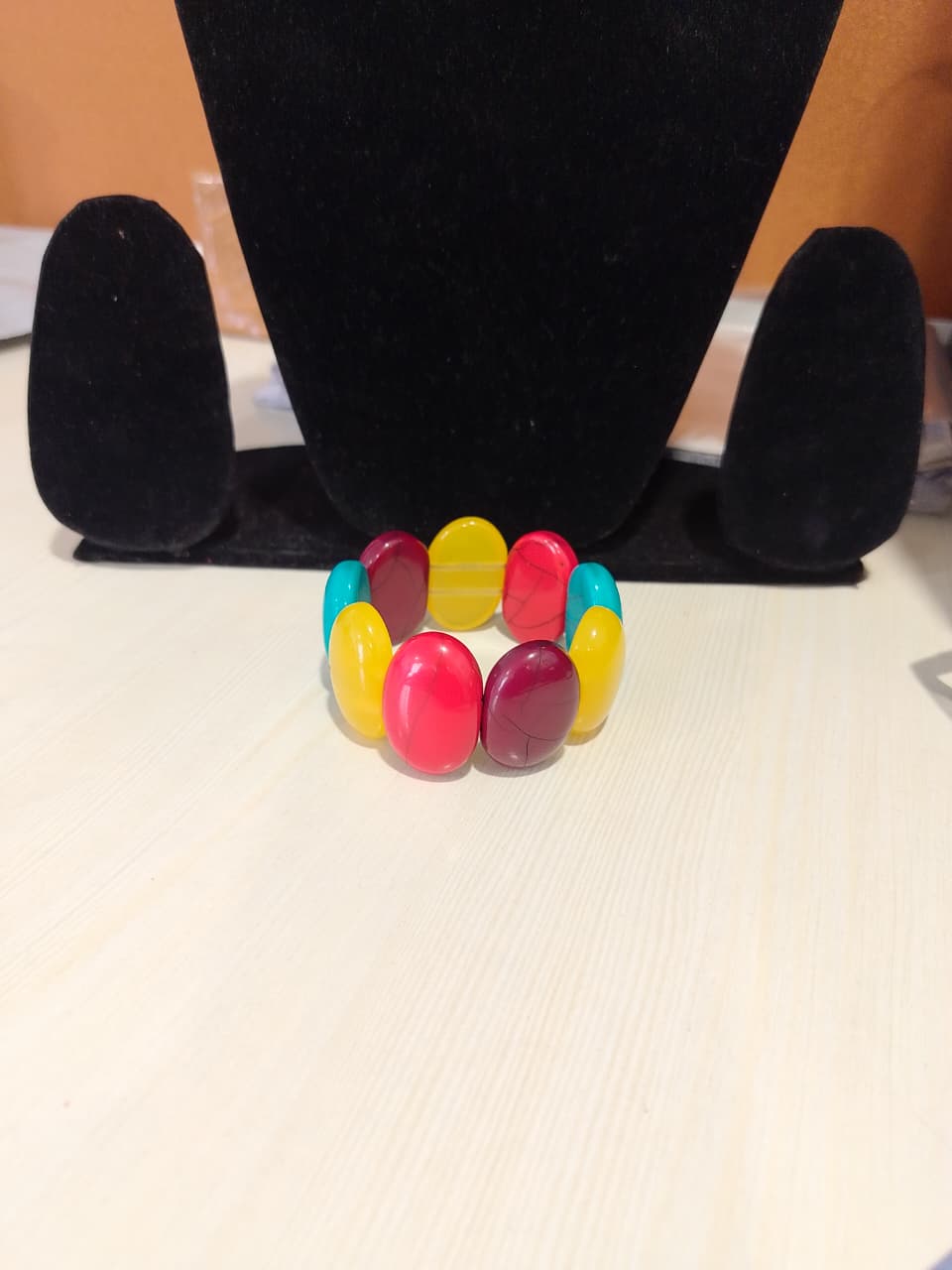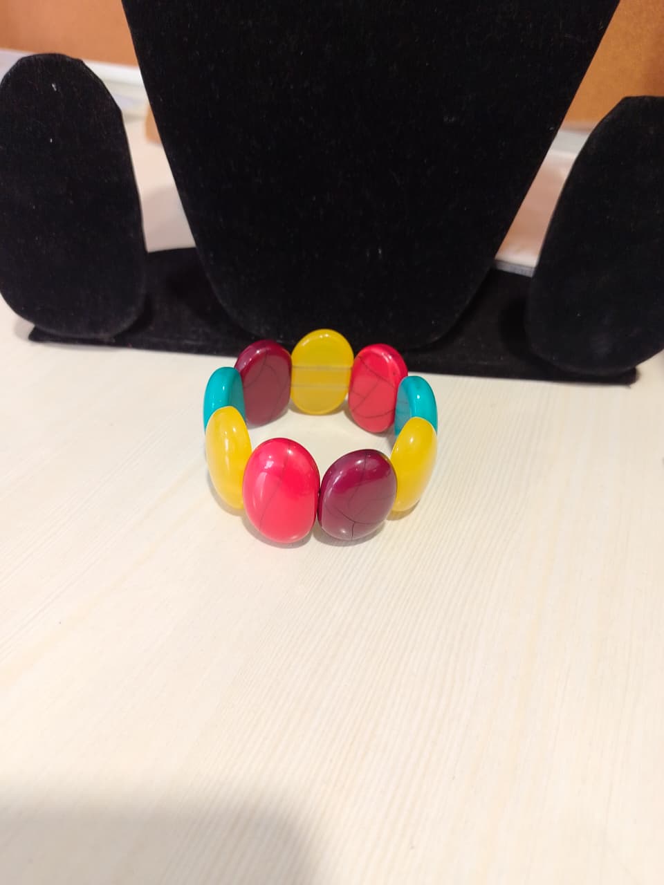 Make a bold style statement with this vibrant multi-colored chunky bracelet, designed to add a pop of color and personality to any outfit. Featuring large, eye-catching beads in a playful mix of hues, this bracelet is perfect for those who love fun, boho-inspired fashion. Whether crafted from resin, acrylic, or natural stones, each bead brings unique texture and charm to the piece. The chunky design ensures a standout look, while the stretchy band offers a comfortable and flexible fit. Ideal for casual outings, festivals, or layering with other accessories, this bracelet is a fun and fashionable addition to your jewelry collection.