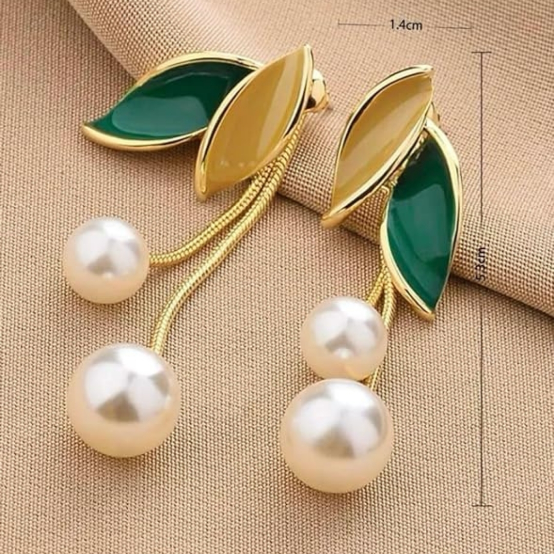 ONUYX Geometric Leaf and Pearl Drop Earrings.