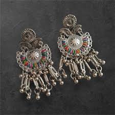 Add a vibrant splash of color to your look with the Ox 20 Multi Meena Oxidized Earrings, a stunning fusion of traditional design and colorful artistry. These earrings feature intricate oxidised silver craftsmanship adorned with beautiful Meena work in multiple shades, reflecting rich cultural heritage and skilled detailing. The elegant design adds a festive charm, making them perfect for weddings, celebrations, or ethnic daywear. Lightweight and comfortable, they pair effortlessly with sarees, kurtis, and lehengas. The Ox 20 Multi Meena Oxidized Earrings are a must-have for those who love bold, artistic jewelry with a touch of timeless elegance.