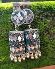Enhance your traditional collection with these exquisite Oxidised Jhumka Earrings, a perfect blend of classic design and intricate craftsmanship. Featuring the iconic bell-shaped silhouette, these earrings showcase detailed oxidised silver work that adds a vintage, antique charm. Lightweight and comfortable, they sway gracefully with every movement, making them ideal for festivals, weddings, or everyday ethnic wear. Their versatile design pairs beautifully with sarees, lehengas, and kurtis, elevating any outfit with timeless elegance. Whether dressing up for special occasions or adding flair to your daily look, these oxidised jhumkas are a must-have accessory for lovers of heritage-inspired jewelry.
