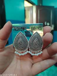Timeless and elegant, the Oxidised Jhumki is a perfect blend of traditional charm and vintage style. Crafted with intricate detailing and finished in rustic oxidised silver, this jhumki adds a graceful ethnic touch to any outfit. Its classic bell-shaped design creates a beautiful sway with every movement, making it ideal for festive occasions, weddings, or daily wear. Lightweight and comfortable, it pairs effortlessly with sarees, salwar suits, and even Indo-western ensembles. Whether you’re looking to enhance your ethnic collection or gift someone special, this oxidised jhumki is a versatile accessory that brings culture and sophistication to your jewelry box.