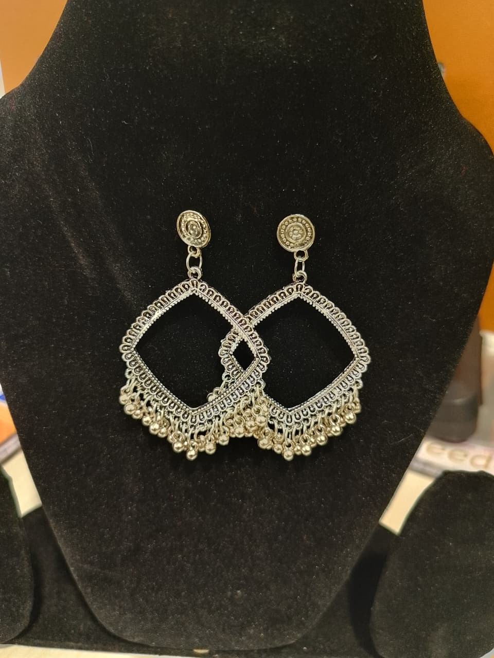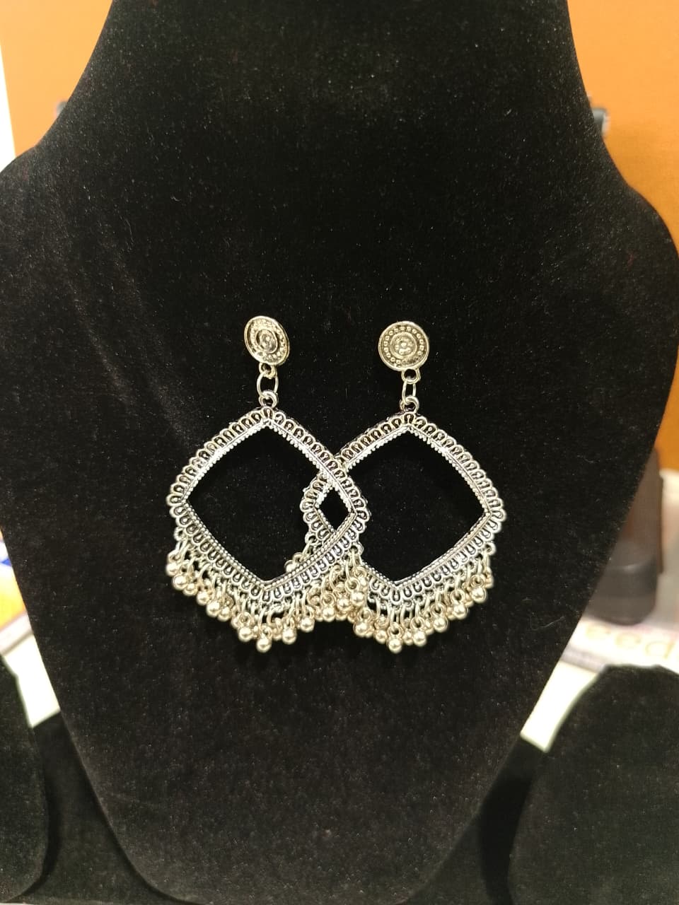 Add a touch of vintage charm to your look with these exquisite Oxidized Silver Jhumka Earrings. Crafted with intricate detailing, these earrings feature a traditional bell-shaped design enhanced by antique silver tones that exude rustic elegance. The oxidized finish gives them a timeless, earthy appeal, making them perfect for ethnic wear like sarees, kurtas, and lehengas. Lightweight and comfortable, they are ideal for everyday wear or festive occasions. The delicate patterns and fine craftsmanship reflect India’s rich jewellery heritage. Stylish yet rooted in tradition, these oxidized silver Jhumkas are a must-have accessory for those who appreciate classic, handcrafted beauty
