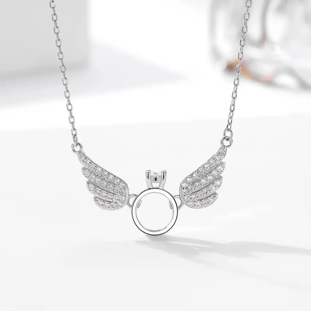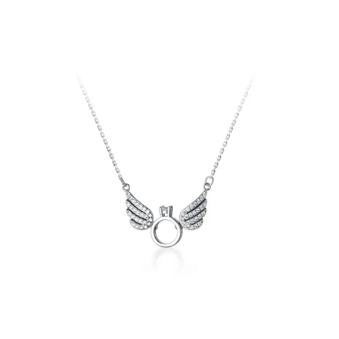 Sterling Silver Angelic Wings Ring Pendant Necklace.