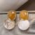 JJK 11 Korean-style gold-plated hoop earrings with dangling white stone or pearl charms,
