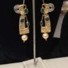 These earrings are exquisite gold-plated Meenakari pieces, beautifully crafted with a vibrant peacock design that symbolizes grace and beauty. Highlighted with intricate enamel work, they showcase the rich tradition of Meenakari artistry. The earrings are adorned with sparkling Kundan stones that add a royal touch, while a single elegant pearl drop enhances their overall charm. Perfect for festive occasions, weddings, or cultural celebrations, these earrings effortlessly blend traditional craftsmanship with timeless elegance. Their colorful detailing and graceful silhouette make them a striking accessory to pair with sarees, lehengas, or anarkalis, adding a regal flair to any ethnic ensemble.