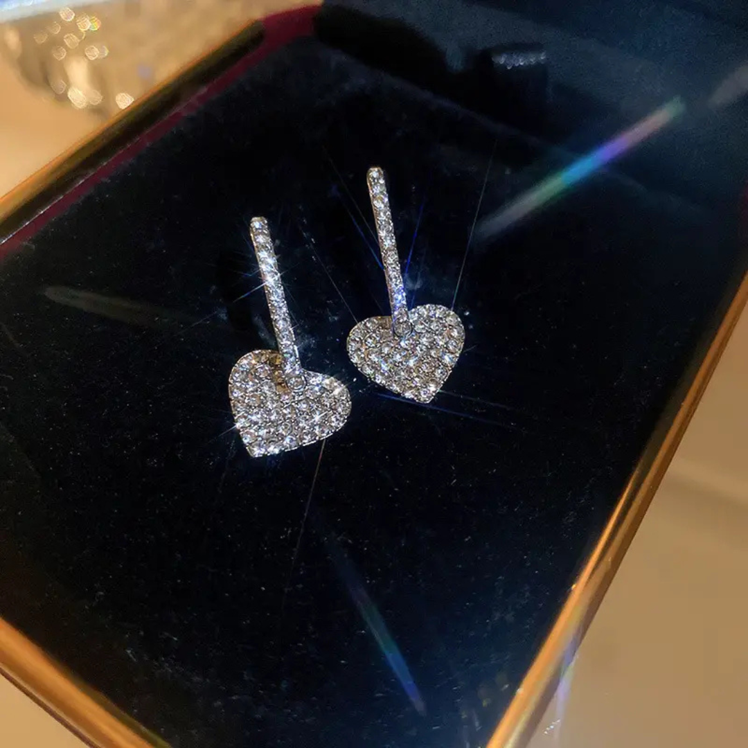 White Stone Heart Drop Earrings