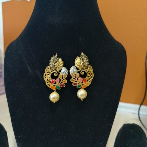 “Dual Peacock Designer Jadau Kundan Earrings with Pearls