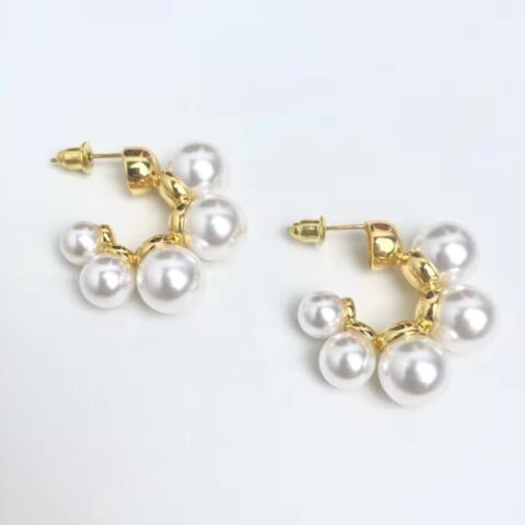 Gold Toned Pearl Studded Hoop Earrings