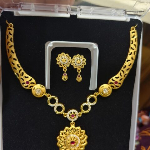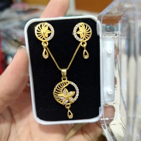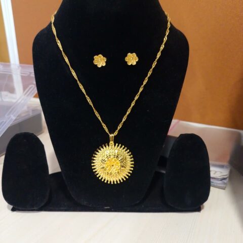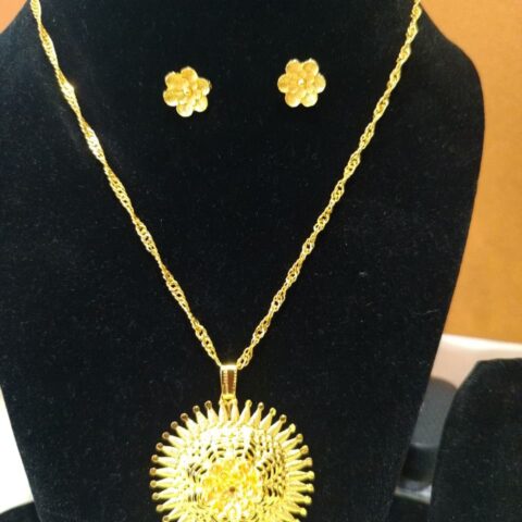 gold-plated chain pendant set with matching earrings,