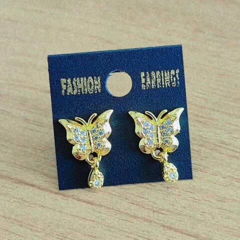 gold-plated butterfly stud earrings adorned with Cubic Zirconia/American Diamond