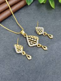 gold-plated American Diamond (AD) pendant and earring set.