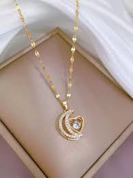 gold-plated alloy necklace with a crescent moon and heart