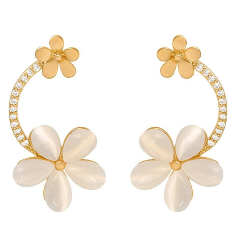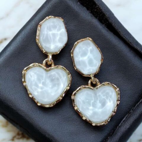 Gold-Plated White Heart Drop Earrings