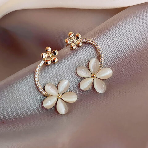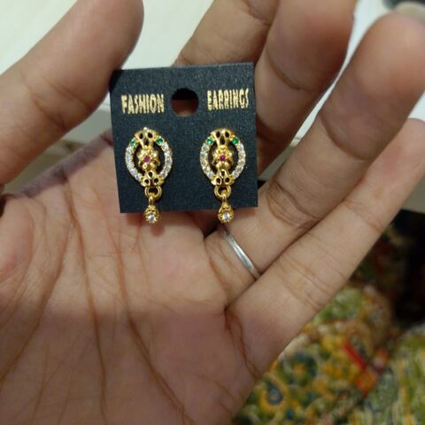gold-plated stud earrings with a dangling drop, adorned with cubic zirconia (AD stones).