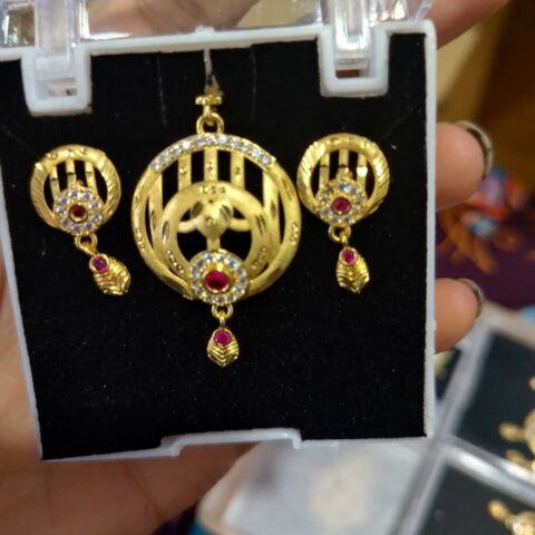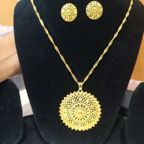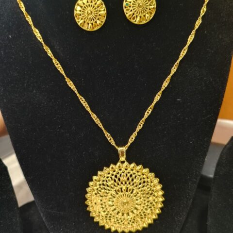 gold-plated pendant set with matching earrings,