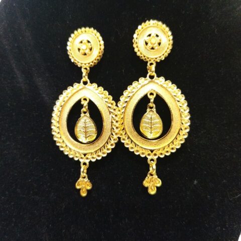 Gold-Plated Traditional Indian Drop Earrings with Leaf Motif or Rajkot Style Gold-Plated Drop Earrings