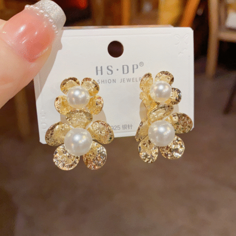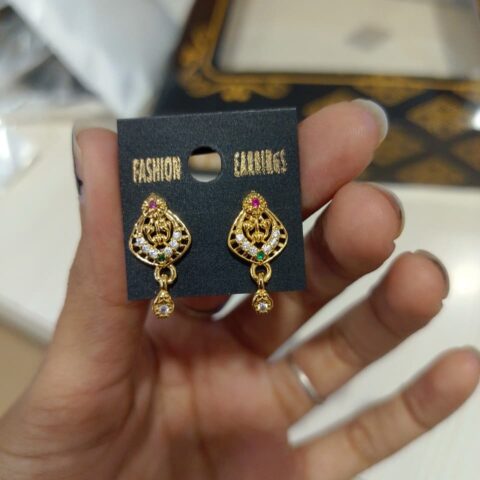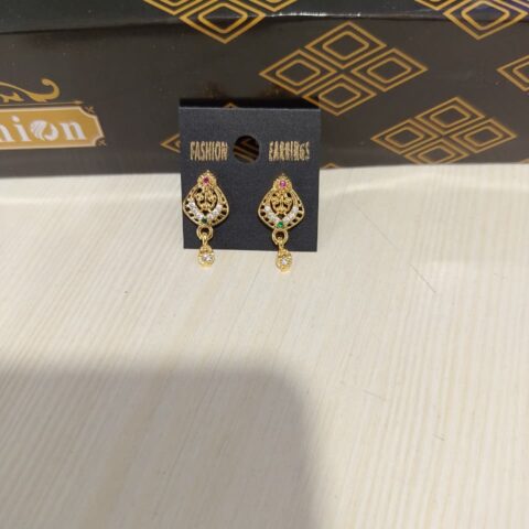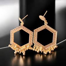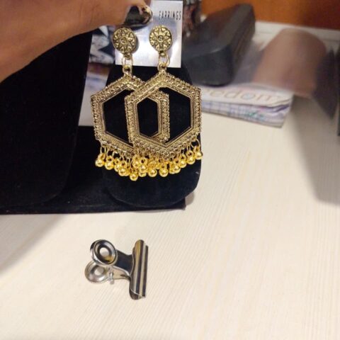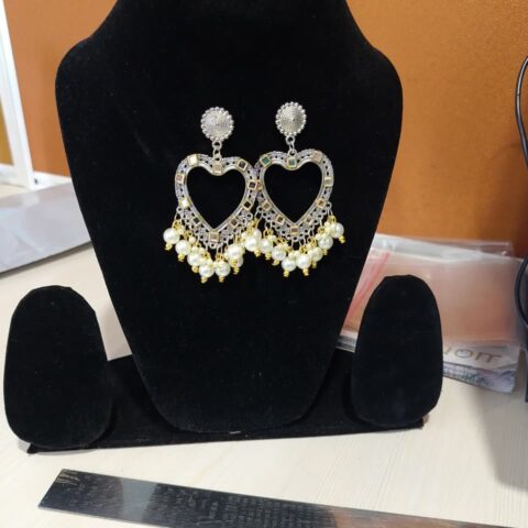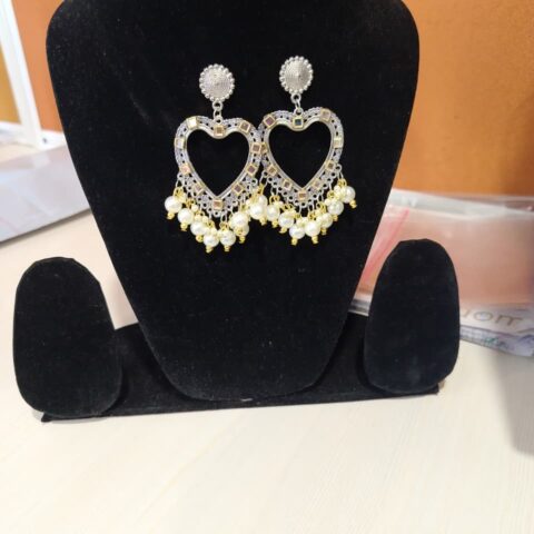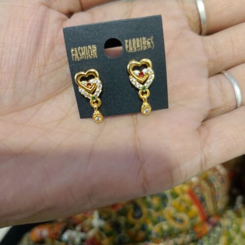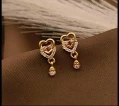 heart-shaped, gold-toned drop earrings embellished with stones,
