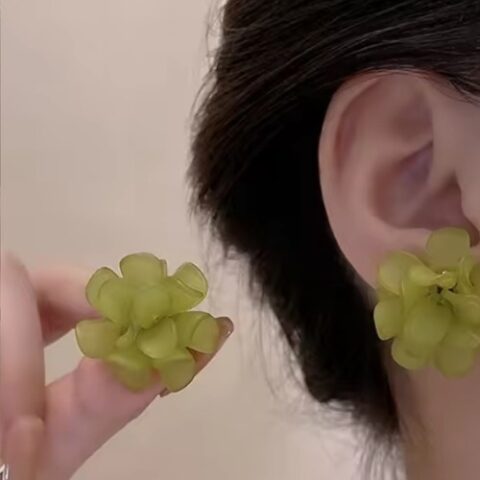 JJK 34 Green Flower Stud Earrings.