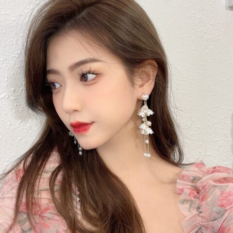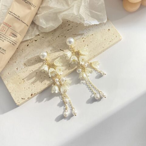 JJK 51 Lightweight Faux Pearl & Lily Flower Drop Earrings