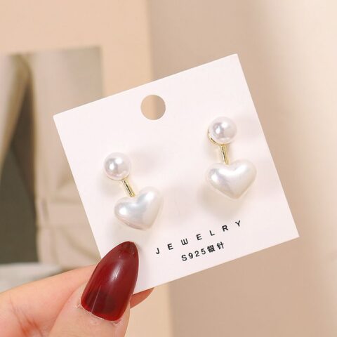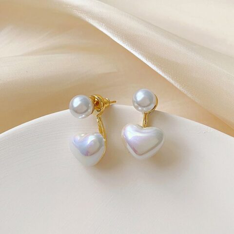 JJK 60 Gold-Plated Korean Marvelous Dual Hearts Pearl Drop Earrings