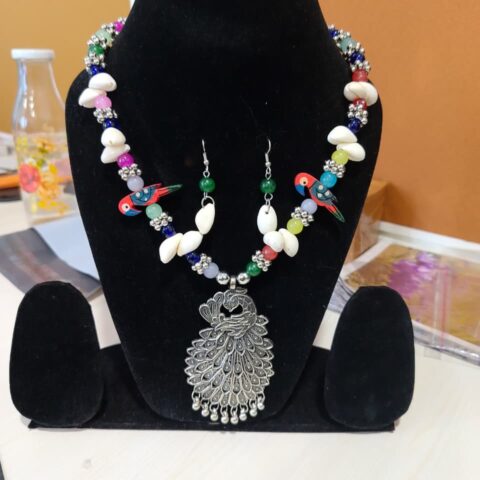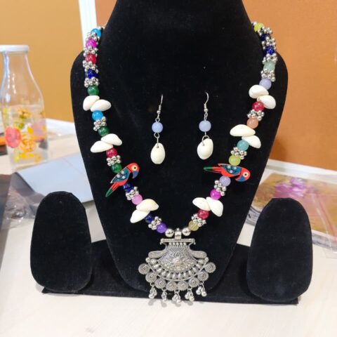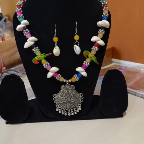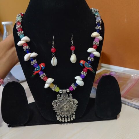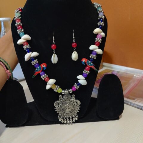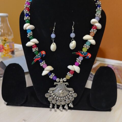 Navratri Special! Multicolor German Silver Shell & Thread Beads Necklace Set