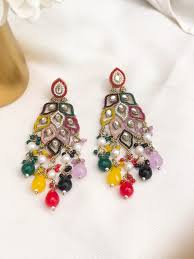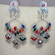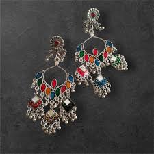 Multicolored Mirror Oxidised Jhumka Earrings,