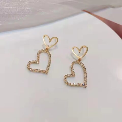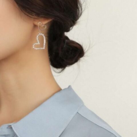 orean Style Rhinestone Heart Drop Earrings.