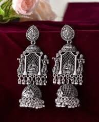 Oxidized Silver Radhe Krishna Jhumki Earrings