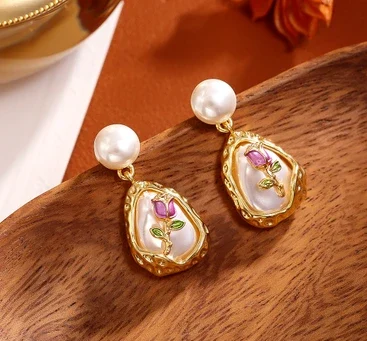 Pearl Grape Cluster Stud Earrings.