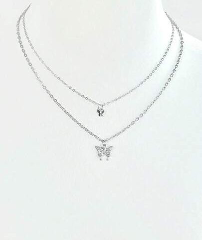 Stylish Silver Polish Butterfly Pendant Chain Necklace