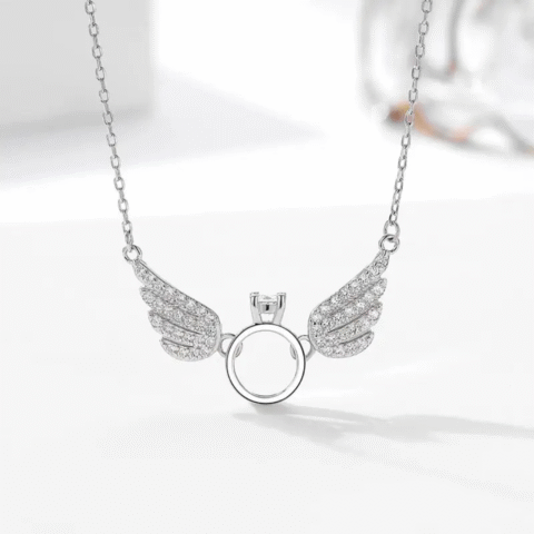 Sterling Silver Angelic Wings Ring Pendant Necklace.