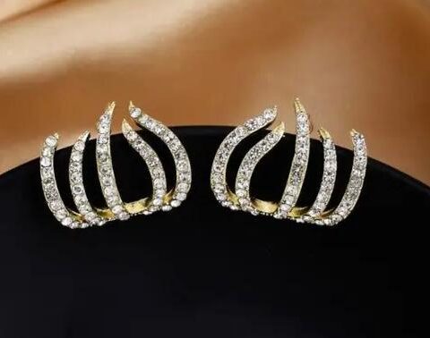 Vassaley Korean Gold Plated Shiny Triple Hoop Earrings
