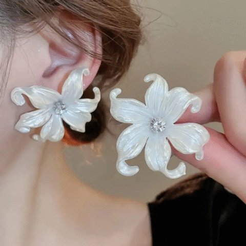 White Pearl Camellia Flower Dangle Earrings (Copy)