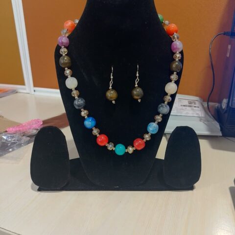 colorful beaded necklace and matching earrings set